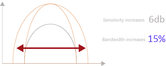Triple Matching Layers technology improves acoustic energy conversion efficiency, reduces acoustic energy loss during propagation, improves bandwidth and signal-to-noise ratio, and results in better images.